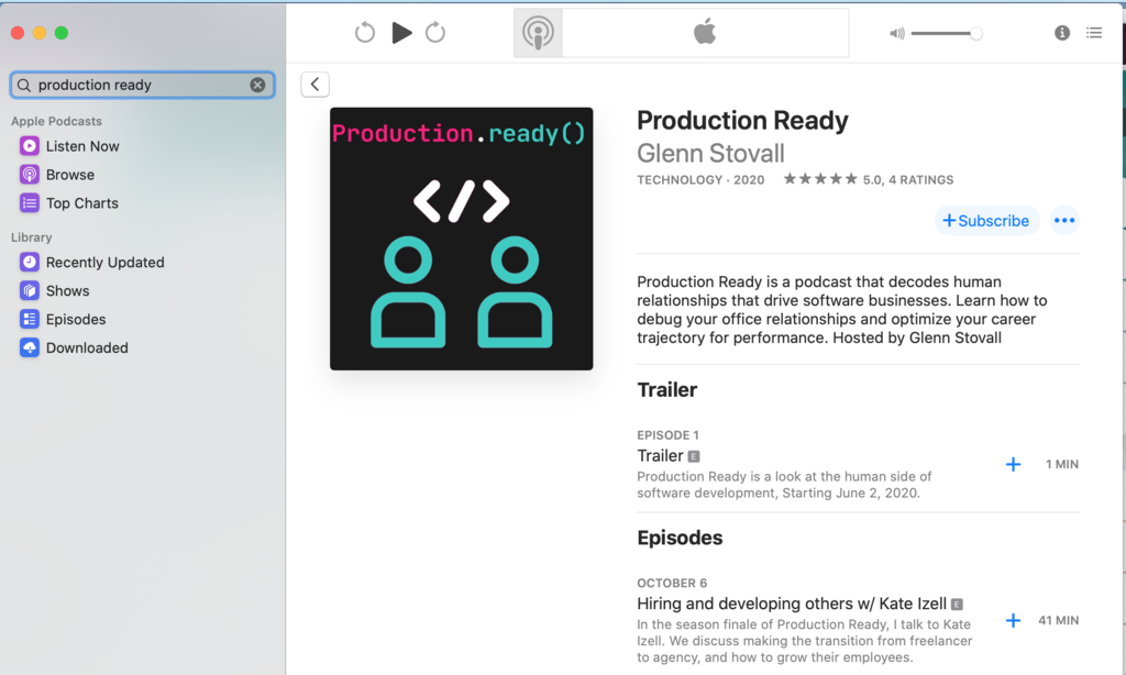 In the same vein, Production Ready is “small p podcasting.” I don’t have a big audience, but it enables me to have conversations with people I otherwise would not have and build connections within communities I otherwise wouldn’t have.