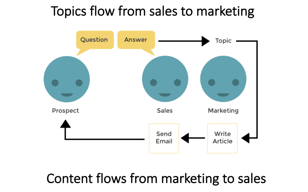 Content can fit into & enhance the sales process. Instead of writing articles, I’d start by focusing on landing and service pages. Instead of attempting to drive organic traffic to these pages, think about building tools that you can use in sales calls and emails. When it comes to writing articles and blog posts, use questions that come up in client conversations as a primary source for new ideas. This graph from Orbit Media sums it up nicely: