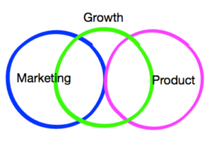 There are many different ways to use these terms, but broadly I would define marketing more as “driving people into the funnel,” product as “the end of the funnel” and growth as “the funnel.” I thought about this because I used to work in product, moved over to marketing, and now realizing, maybe what I should be aiming for is growth.