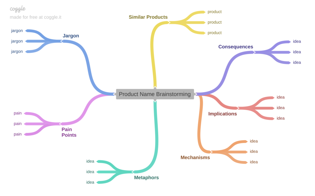 You’ll need somewhere to collect your ideas. Use whatever style works for you; I prefer mindmaps on paper. Y can use a tool like Coggle or a spreadsheet. Then, create 7 sections: